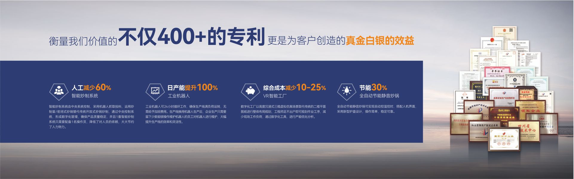 成都??茩C械設備制造有限公司(簡稱:成都海科)是一家集研發、生產、銷售、服務為一體,專注為中國傳統食品行業提供自動化、智能化、數字化、智慧工廠整體解決方案的國家級高新技術企業。公司擁有標準化辦公樓及現代化生產車間約42000m2,具有較強的綜合研制、設計開發、生產能力,具備嚴格的質量管理體系和完善的售后服務體系。公司業務范圍覆蓋:復合調味品智能生產線、中式醬鹵肉制品智能生產線、醬腌菜智能生產線、智慧餐廚、央廚預制菜調理智能生產線,與海底撈、天味、九毛九、聚慧、楊國福、絕味、雙匯、新希望、無窮、烏江、吉香居、仲景、李記樂寶、Tyson、益海嘉里、開小灶、老鄉雞等眾多知名企業合作。截止目前,成都??埔呀浿Τ?000+企業順利投產5000余條生產線,為客戶創造年產值超1000億元!